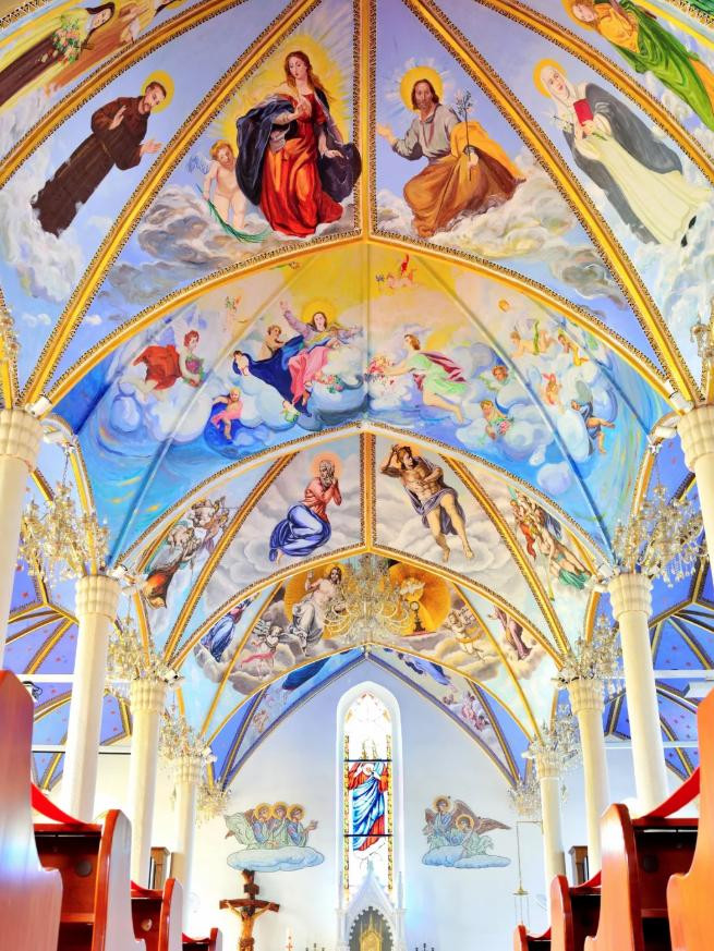 一旁的哥特式天主教堂,隐藏在市井之中,是京郊现存最古老的教堂。高墙尖顶、彩窗静默,在灰砖黛瓦中格外醒目。