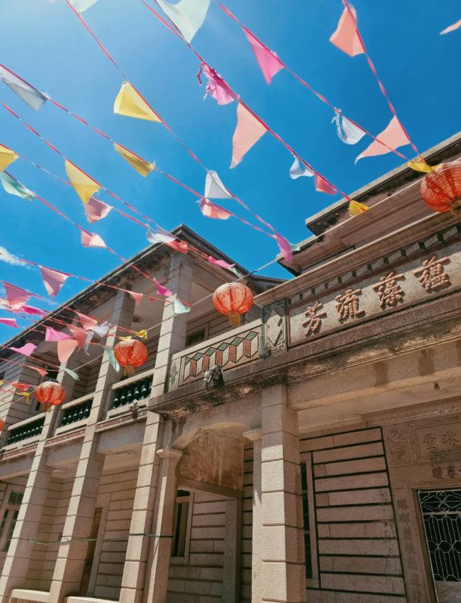 风吹动祠堂门前的红布条,像是在轻轻挥手。