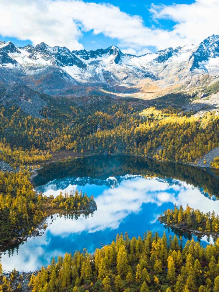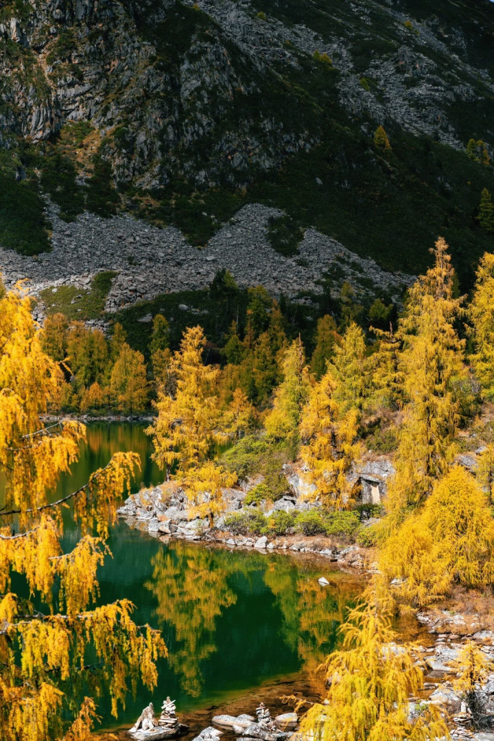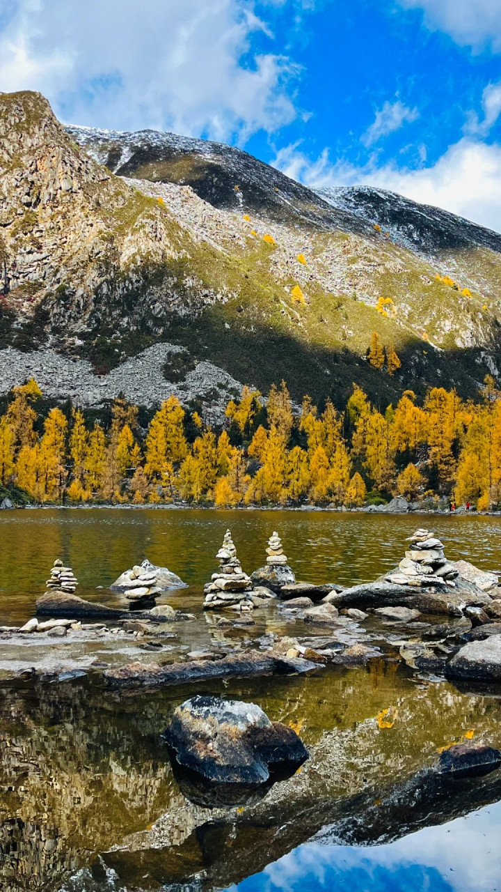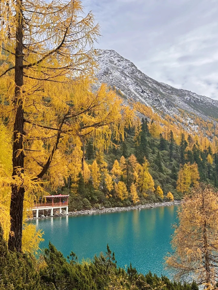 每年10月-11月,五颜六色的冷杉、金黄落叶、大大小小的松果子,这里层林尽染、雪山映湖,堪称“封神级秋景”!最关键的是——它仍小众、原生态、未过度商业化,徒步爱好者闭眼冲就对了!
