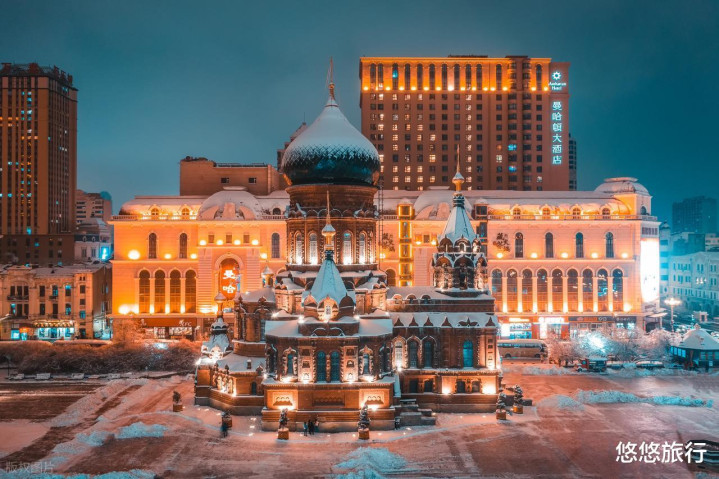 中央大街俄式风情与索菲亚教堂灯光交织,马迭尔冰棍奶味儿香浓。松花江大桥,看一场日落,桥下结冰的松花江江面,到傍晚也很热闹。周边的亚布力滑雪场适合各水平滑雪爱好者。