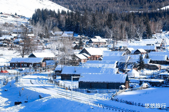 比禾木更安静的西北第一村,整个村子都是积雪覆盖的小木屋,路上游客很少,晴天的白哈巴完全不需要滤镜。